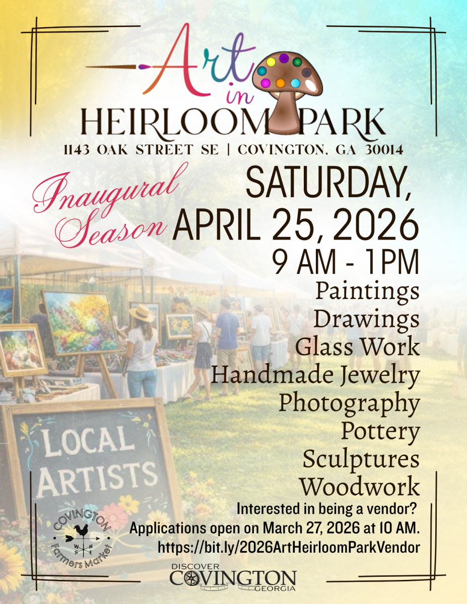 An opportunity for local and neighboring artists to showcase and sell their artwork, join us for the inaugural season of Art in Heirloom Park! Artists from different mediums, acoustic music, + a couple of food vendors for drinks and light fair while you shop, enjoy a casual Saturday morning beneath the shade trees of Heirloom Park.