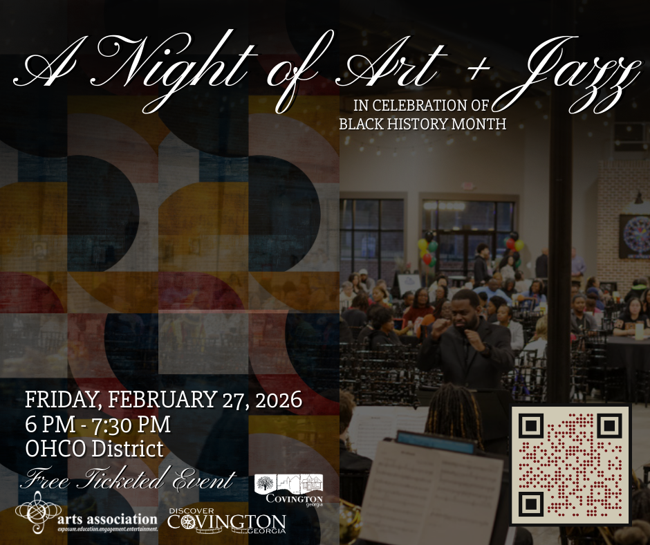Creativity and rhythm come together for a night of inspiration and celebration with artwork by Newton County School students; professional artists Margaret Warfield and Lauren Baulkom; and jazz music by the Alcovy High School Jazz Band and the Rockdale County High School Jazz Band.